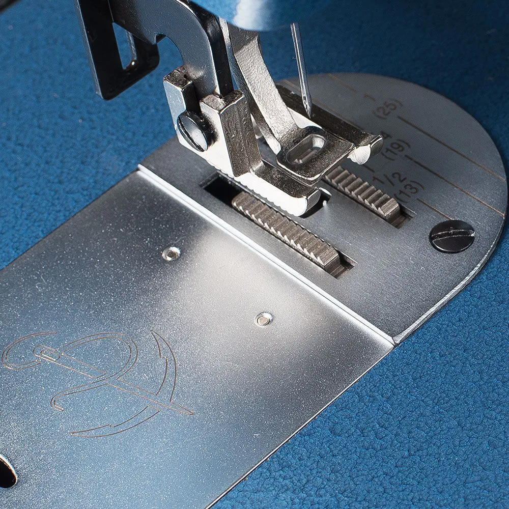 The Ultrafeed features a 3/8-inch-high foot lift and best-in-class needle bar travel, so you can sew virtually anything you can put under foot . The Ultrafeed can also be easily adjusted to sew lighter home decor fabrics, so it can be your machine of choice for many projects. Set the variable stitch length up to 6mm in straight stitch and up to 5mm in zigzag width and you\’re ready to go. The Ultrafeed will easily sew through fabrics such as: